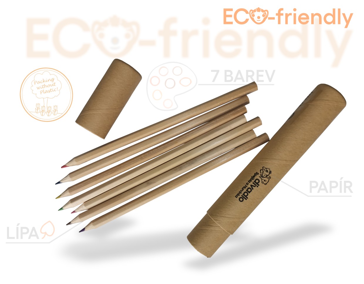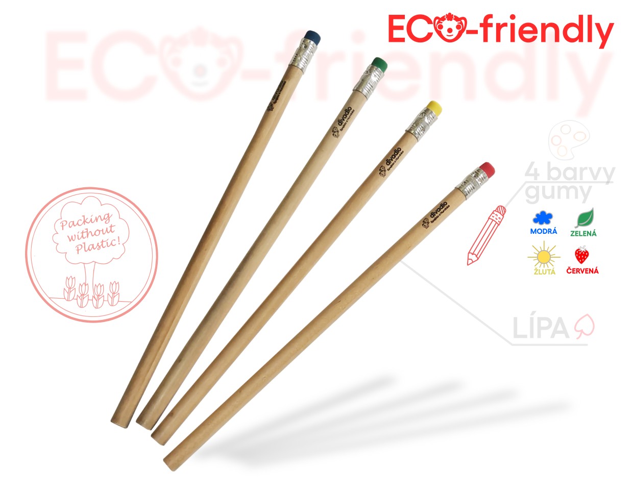 Tužky s praktickou gumou ve čtyřech barvách. Cena: 15,- Kč - Pastelky z lipového dřeva