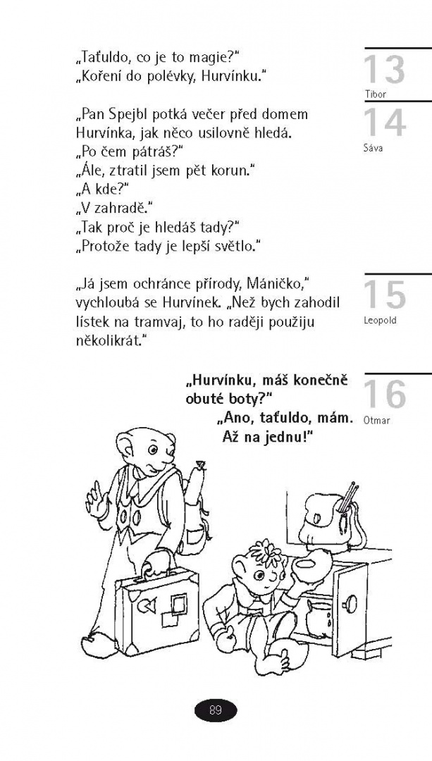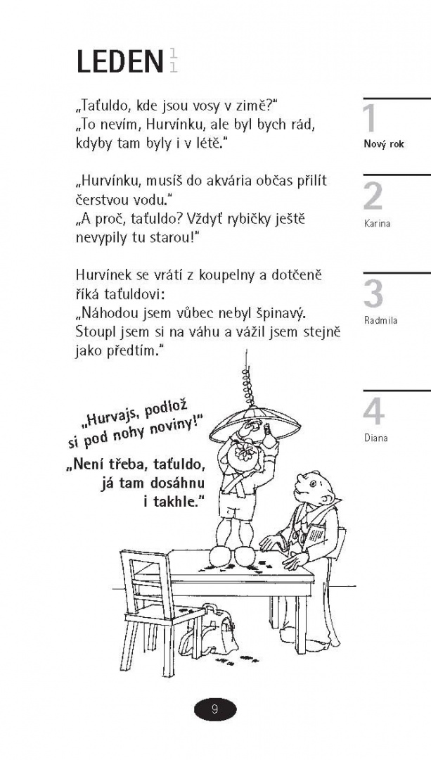 Den, kdy se alespoň jedenkrát nezasmějeme, jako by nebyl. A to je škoda, nemyslíte? Dá se to však snadno napravit – v téhle knížce vám na každý den nabízí jeden ušatý vtip s cukaturou smíchu taťulda Spejbl s Hurvínkem a samozřejmě při tom nechybí ani Mánička se svou bábinkou a chundelatý čtvernožec Žeryk. Doplněno krátkou historii Divadla S+H napsanou dnes nejpovolanější osobou – Helenou Štáchovou.