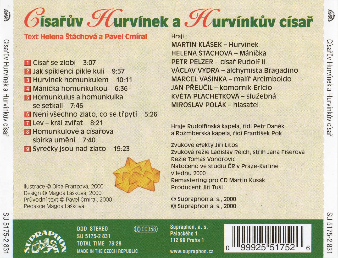 Helena Štáchová a Pavel Cmíral zavedli už své protagonisty na dvůr Přemysla Otakara II. /Hurvínek mezi Přemyslovci/, na Karlštejn, hrad císaře Karla IV. a jeho syna krále Václava /Hurvínek na dvoře lucemburském/ i do komnat Jiřího z Poděbrad /Hurvínek a husitský král/. Ve čtvrtém díle se Hurvínek a Mánička stávají hosty císaře Rudolfa II., který je považuje za objev svých alchymistů, pokoušejících se splnit vladařovo přání a vytvořit homunkula - člověka umělého. Také tento jejich výlet do historie je plný napětí i legrace. Kromě Martina Kláska /Hurvínek/ a Heleny Štáchové /Mánička/ se o role podělili herci Petr Pelzer,Václav Vydra, Marcel Vašinka a Jan Přeučil. Některé postavy - jako např. dvorní malíř Arcimboldo - jsou, stejně jako dobové reálie, autentické. Malí posluchači se tak nejenom pobaví, ale i poučí!