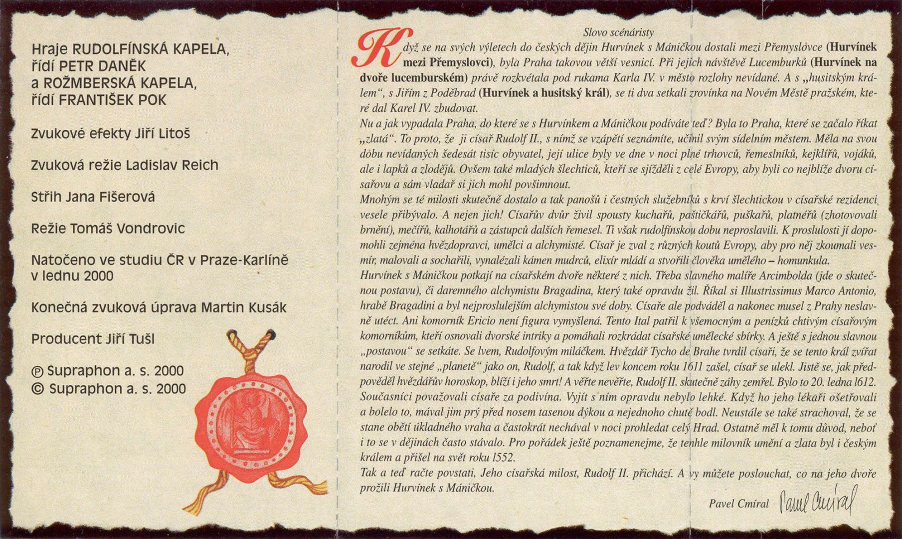 Tak a teď račte povstati, Jeho císařská milost, Rudolf II. přichází. A vy můžete poslouchat, co na jeho dvoře prožili Hurvínek s Máničkou.