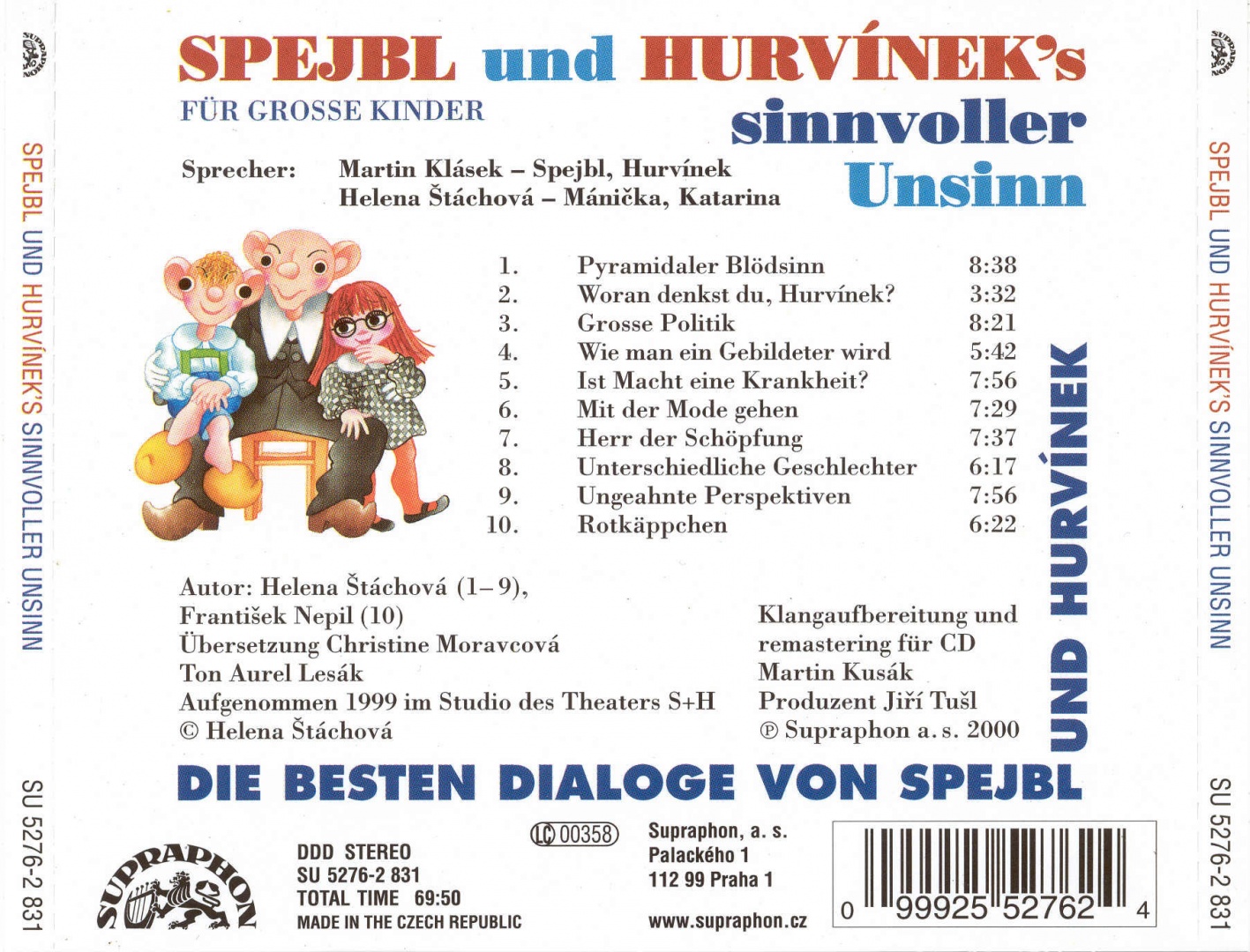 29. února 1996 měla v Divadle S+H premiéru filozofická hra Heleny Štáchové Spejblovy smysluplné nesmysly. Pro Miloše Kirschnera se bohužel při této premiéře jednalo o poslední vystoupení v rolích Spejbla a Hurvínka. O čtyři roky později vychází titul s Martinem Kláskem coby S+H u vydavatelství Supraphon a to pouze v německém překladu Christiny Moravcové pod názvem Spejbl und Hurvínek sinnvoller Unsinn. V češtině jsou ze hry k dispozici jen dva kratší dialogy.