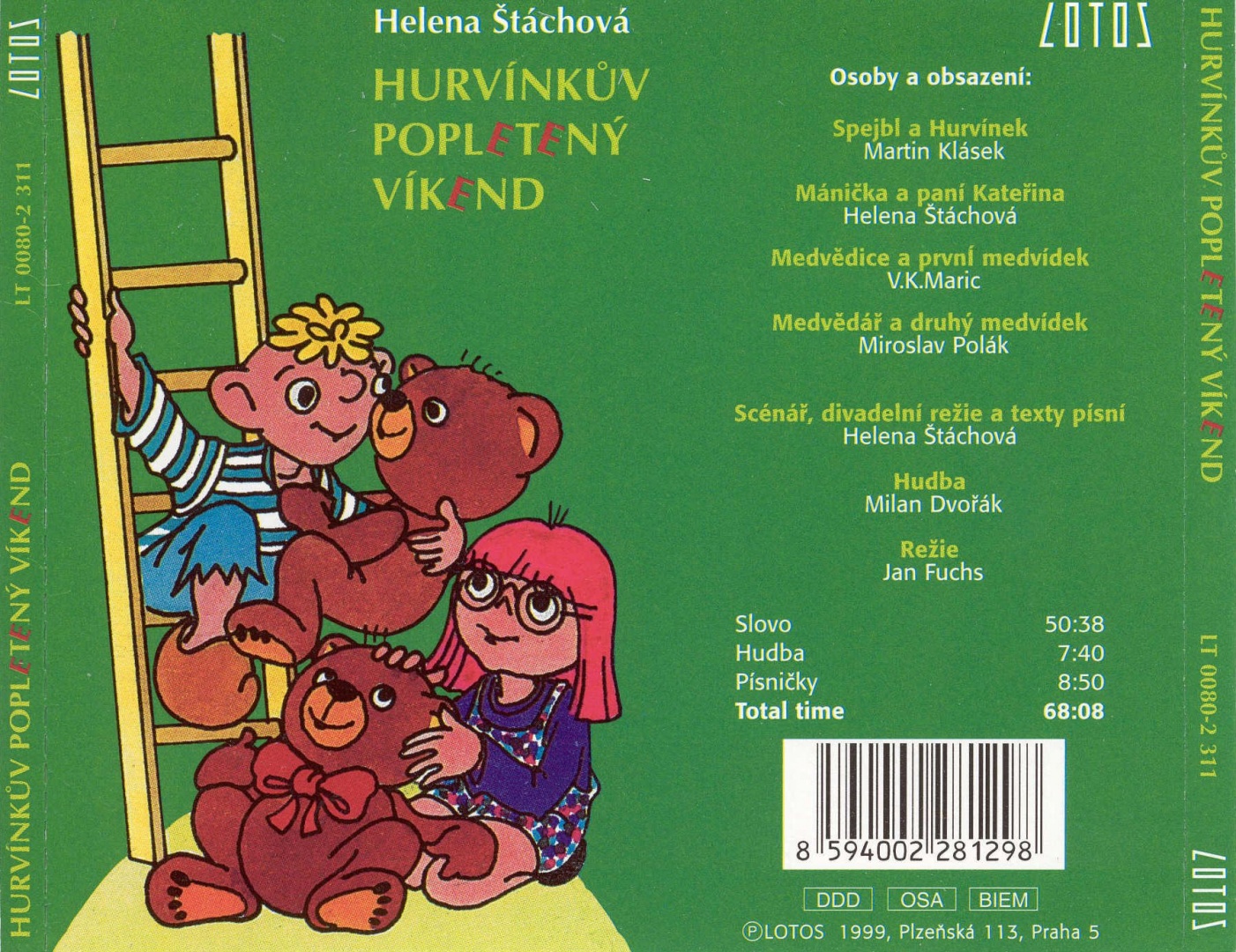 Hurvínkův popletený víkend je příběh o jednom zamotaném nedělním odpoledni, ze kterého jde hlava kolem nejen otci Spejblovi, synkovi Hurvínkovi, jeho věrné kamarádce Máničce, paní Kateřině, ale také dvěma rozpustilým medvíďatům, která utekla z cirkusu. Šmodrchujícím hybatelem děje se totiž stává nejasný počet medvědů a nahrávka zručně akceptovala neprozrazení pointy dříve, než bylo z pohledu příběhu nutné – medvědí bručení jsou si natolik hlasově podobná, že je posluchač snadno zamění. Příběh plný písniček, groteskních situací i napínavých zápletek potěší a spolehlivě rozesměje všechny děti, bez ohledu na věk.