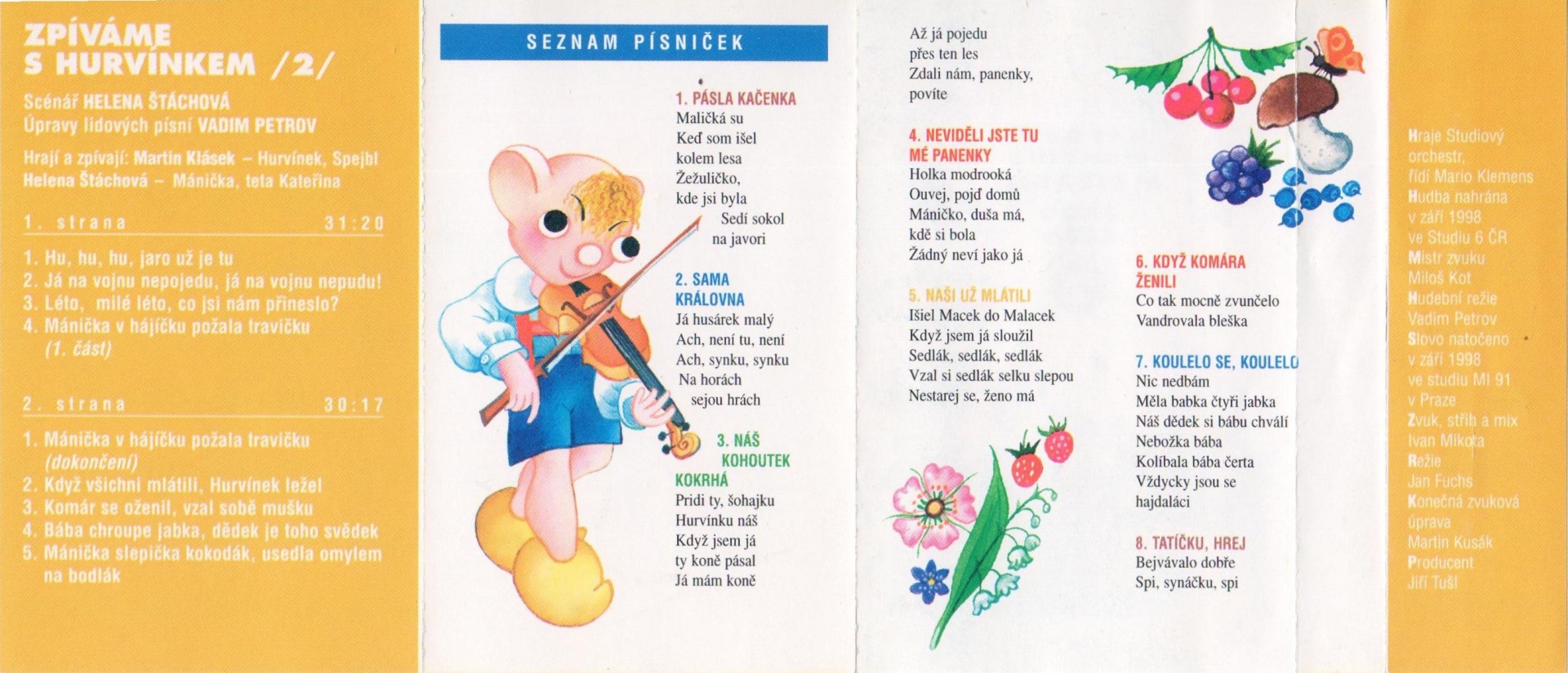 Hudba: nahrána v září 1998 ve studiu 6 ČR, mistr zvuku: Miloš Kot