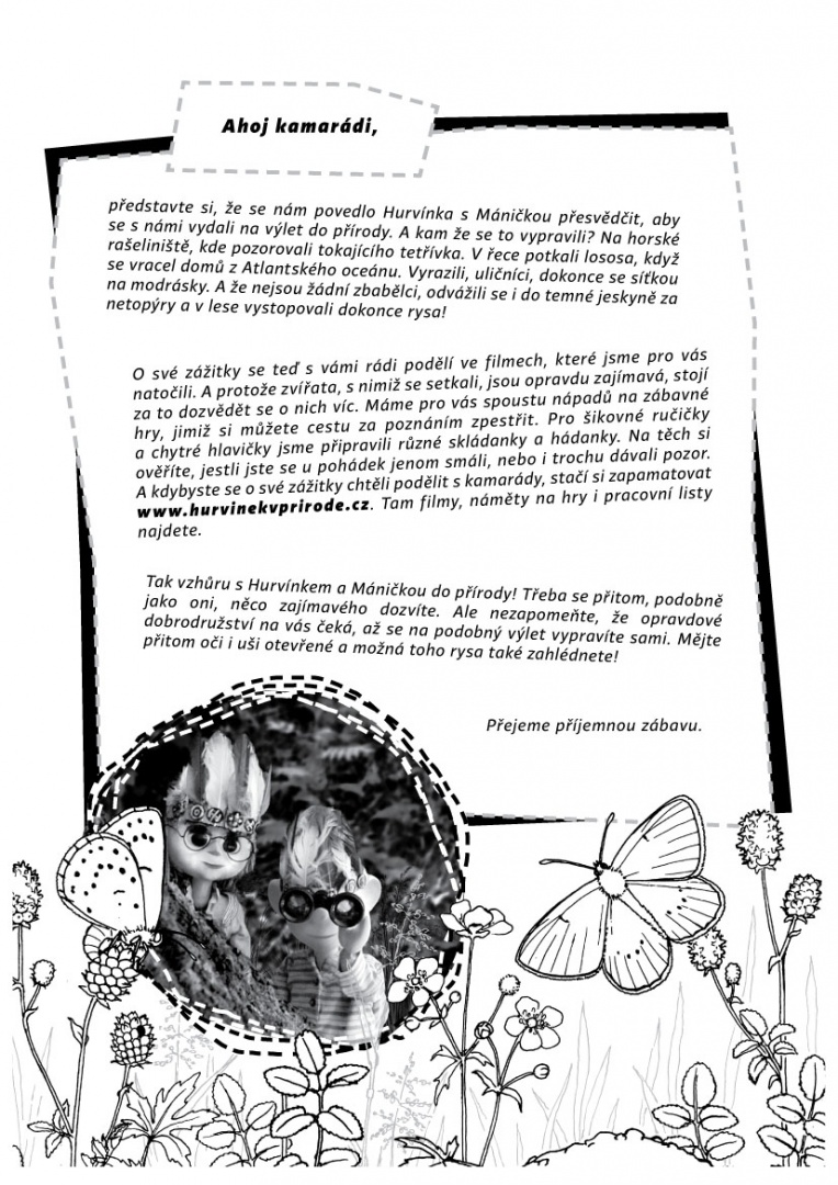 Znalosti, které děti získají v loutkových filmech, rozvíjí soubor informací, aktivit a pracovních listů. V pracovním sešitě je samostatná kapitola věnována každému ze živočichů. V úvodu najdete souhrn důležitých i zajímavých informací o jejich životě, včetně problematiky jejich ochrany. Na úvod navazuje praktická část. Ta nabízí řadu her a výtvarných a jiných aktivit a námětů. Na závěr každé části je zařazena série tématických pracovních listů. Jednotlivé listy pracovního sešitu jsou vloženy do kroužkové vazby, která umožňuje návody a pracovní listy snadno kopírovat. Pevné desky obsahují také DVD s 5 loutkovými filmy. Pracovní sešit v českém a německém jazyce je primárně určen k přípravě školních projektů. Distribuován je do mateřských škol v České republice a v Sasku. V České republice je distribuován zejména do mateřských škol se zvýšeným zájmem o environmentální vzdělávání zapojených do programu Mrkvička Sdružení středisek ekologické výchovy Pavučina (www.pavucina-sev.cz). V současné době je v síti Mrkvička zapojeno cca 700 mateřských škol ze všech 14 krajů.