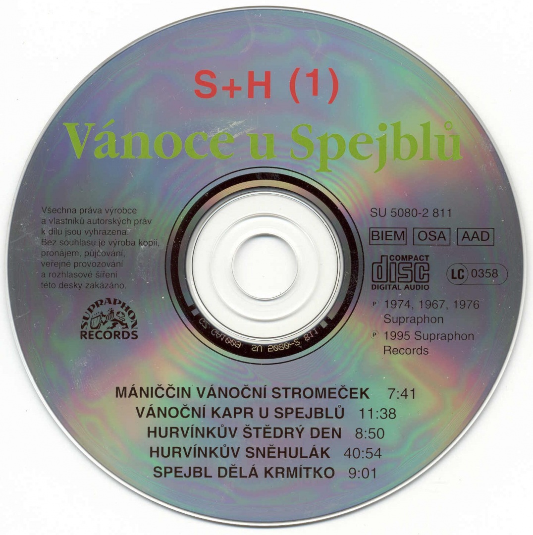 Obsahuje remasterované nahrávky Mániččin vánoční stromeček (1969), Vánoční kapr u Spejblů (1967), Hurvínkův Štědrý den (z LP Z Hurvínkova kalendáře 1976), mírně zkrácenou verzi Hurvínkův sněhulák (1973) a Spejbl dělá krmítko (1974).