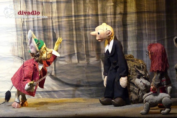 Inscenace má dramatičtější spád ve druhé půli, šťastné je řešení náročnějších přestaveb, které se odbývají za pohyblivými výkryty či jakýmsi retablem, v jehož okénkách, se jako komentující chór objevují dvě postavy zajímavě výtvarně pojednaných loutek hudebníků – Troubáčka a Vozembouška.