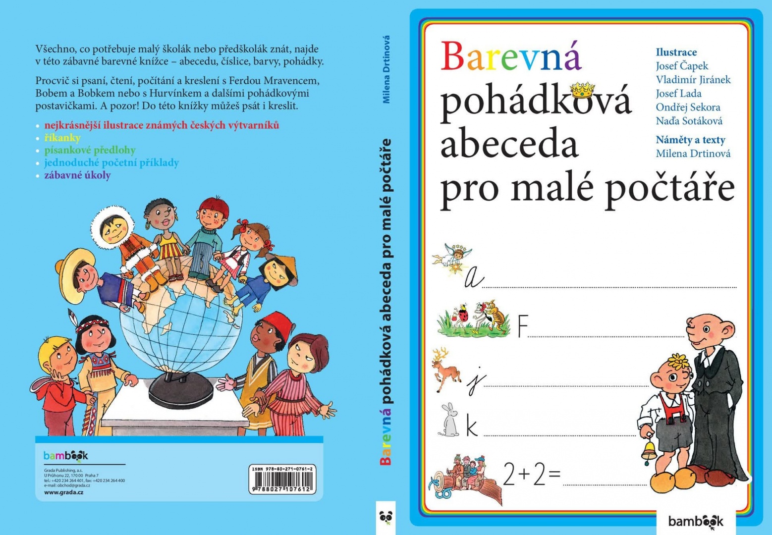 Barevná a zábavná knížka pro všechny děti, které se chtějí spolu s pohádkovými kamarády naučit nebo procvičit abecedu (slovem i písmem) a počítání od 1 do 100. Obrázky známých českých ilustrátorů (Josef Čapek, Vladimír Jiránek, Josef Lada, Ondřej Sekora, Naďa Sotáková, Jiří Trnka) provázejí krátké říkánky. EAN: 9788086574059, rok vydání: 2003, nakladatelství: Tváře