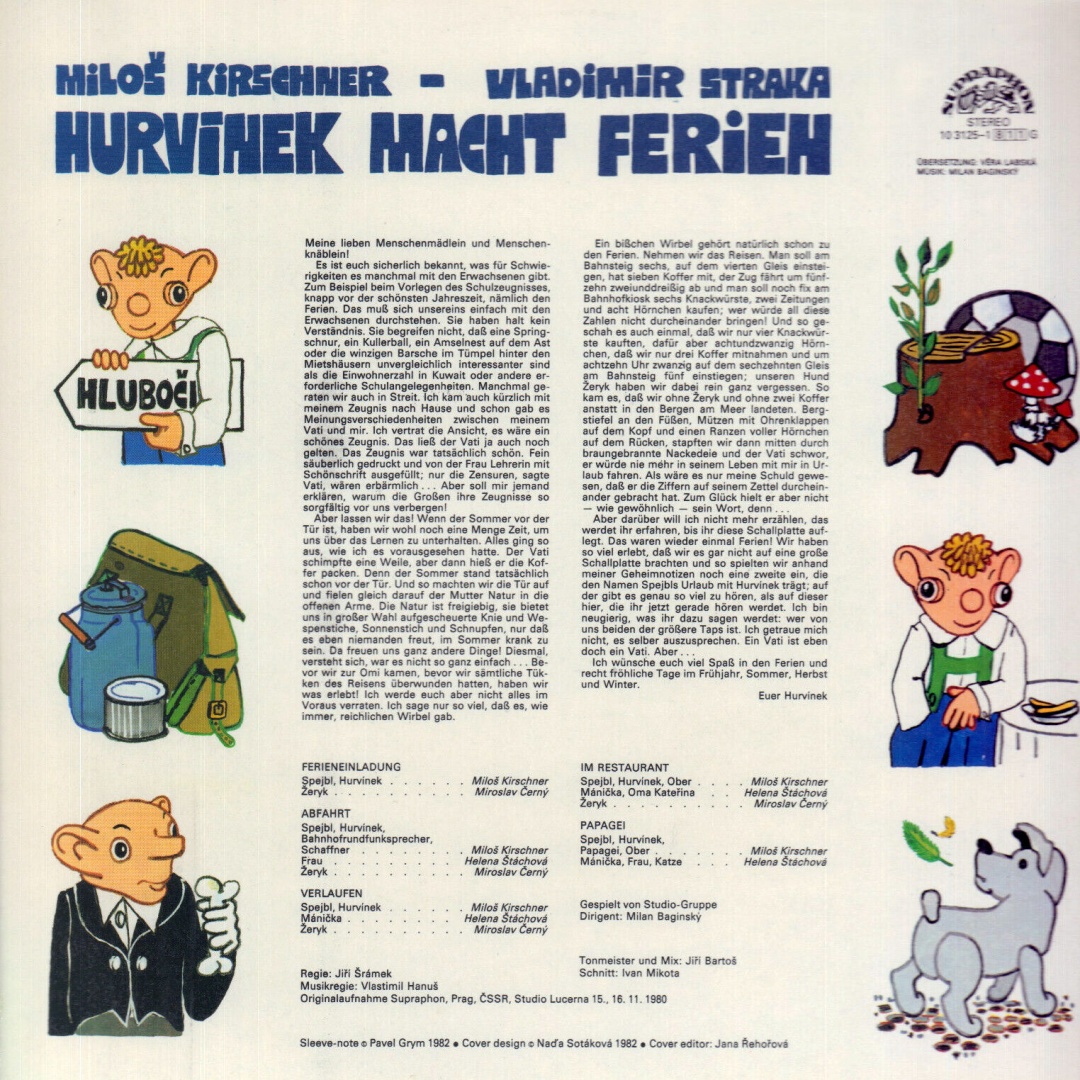 Česká i německá verze prázdninových příhod vznikla ve stejné době. Ruchová koláž je tedy v obou verzích buď stejná, nebo podobná. Totéž platí i o stereo bázi a o muzice Milana Baginského. Na konci německé desky pak Hurvínek vyzve posluchače, že další prázdninové příhody najdou na gramofonové desce Spejbls Urlaub mit Hurvínek.
