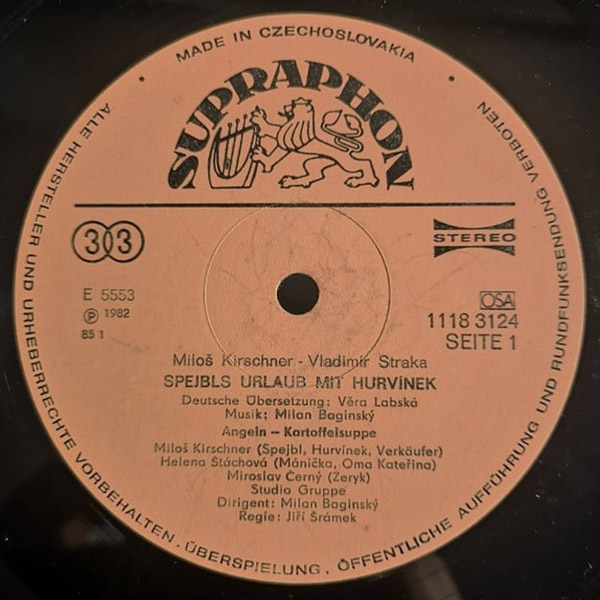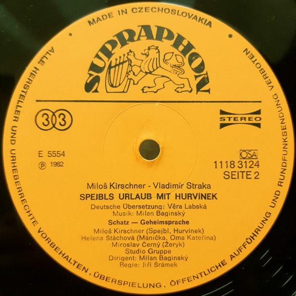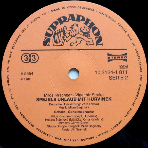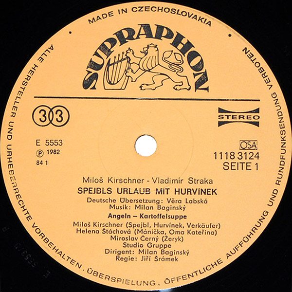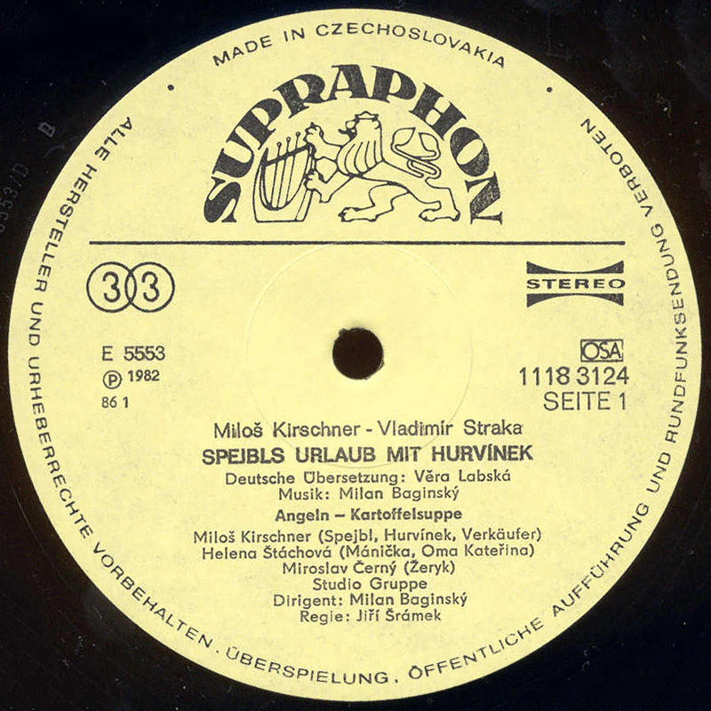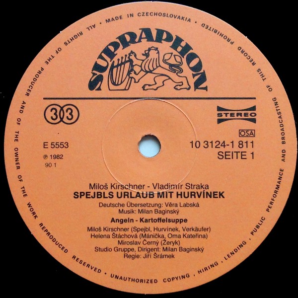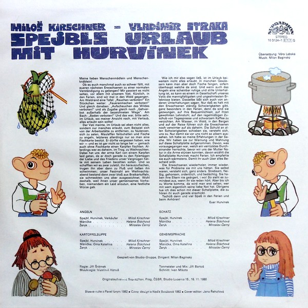 Wie ich mir also sagen ließ, ist im Urlaub beiweitem nicht alles erlaubt, in manchen Gewässern kann man aber doch Fische fangen, sofern überhaupt welche da sind. Und wenn auch das Angeln eine scheinbar ruhige und stille Unterhaltung ist, so kann es einem in Gesellschaft unseres Vatis die mannigfaltigsten und ungeahntesten Erlebnisse bieten. Dasselbe läßt sich auch von anderen Unterhaltungen sagen. Nur daß es halt mit den Erwachsenen ständig Schwierigkeiten gibt, ganz besonders in den Ferien, denn da sind sie gezwungen, auf ihre Bequemlichkeit, auf ihren gewohnten Lehnstuhl, auf den regelmäßigen Zu-schub von Tagespresse und schwarzem Kaffee zu verzichten. Am Wasser, im Wald, in den Bergen und auf der Reise führen sich die Erwachsenen noch verwirrter auf als daheim. Die Schuld an allen Schwierigkeiten schieben sier versteht sich, uns zu. Nur damit sie vor uns nicht so albern aussehen. Ich habe so meine Erfahrungen in der Sache. Wir haben sie zur Warnung und Mahnung auf diese Schallplatte aufgenommen. Davon, was vorausgegangen war, welch ein verrücktes Durcheinander herrschte, bevor wir uns der Mutter Natur in die Arme stürzen konnten, davon erzählt die Schallplatte Hurvinek macht Ferien. Ich empfehle sie euch wärmstens. Damit ihr auch über alles Bescheid wißt.