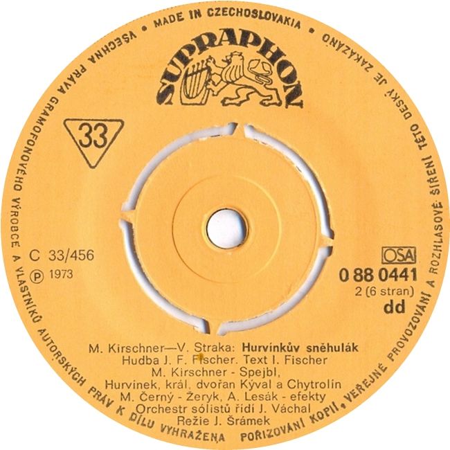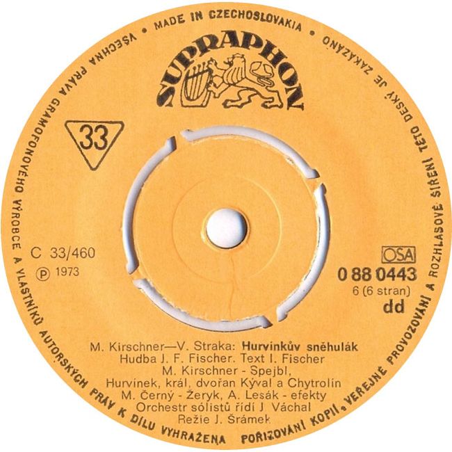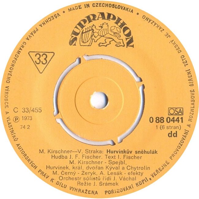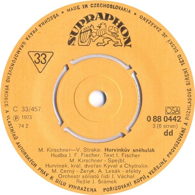 V inscenaci až na Žeryka sehrál všechny postavy Miloš Kirschner a v pětiroli se mu podařilo účastníky modulačně důkladně odlišit tak, aby každý měl svou nezaměnitelnou polohu. Kromě typických hlasů Spejbla a Hurvínka mluví jeden dvořan velmi hluboko, král je témbrem uprostřed a druhý dvořan vysoko. Díky míchání více stop můžeme v jednu chvíli slyšet Miloše Kirschnera hned v několika figurách. V nahrávce se navíc poprvé pracuje se scénickou hudbou. Kromě písniček jsou zde podkresy a hudební nástroje znázorňují i zvukové efekty – přikládání do krbu či nárazy. Kompletní záznam inscenace Hurvínkův sněhulák najdete na stejnojmenném albu.