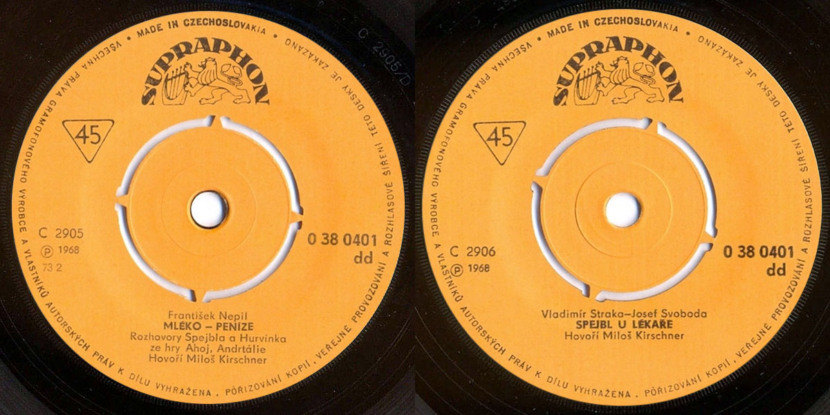 Mléko - Peníze také kompilace S+H 10, Spejbl u lékaře na CD "Spejblovy starosti a Hurvínkův apríl" (2012). SP deska znovu vydána v roce 1972 a 1973.