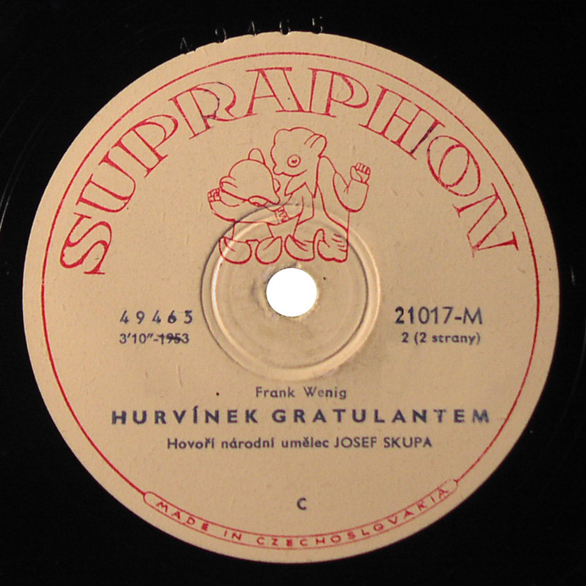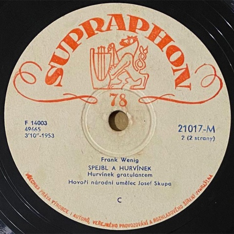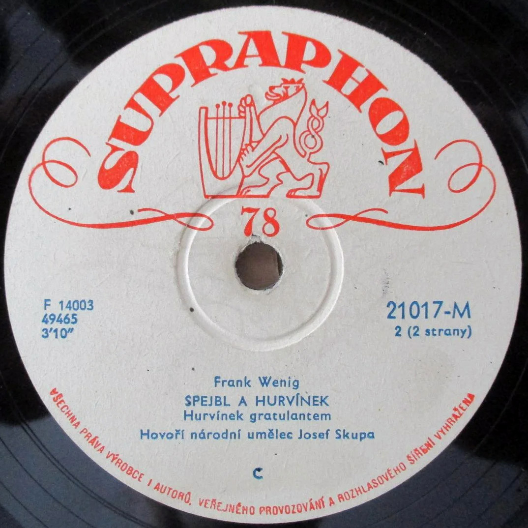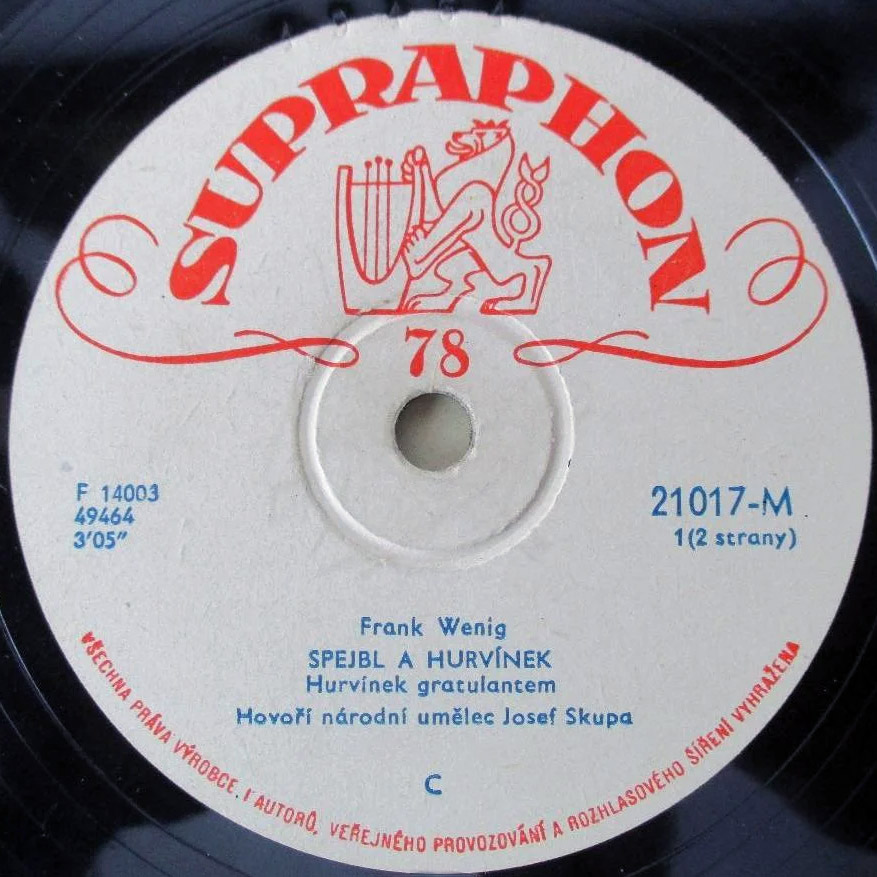 Na jedné verzi etiket je špatně uvedeno jméno autora, citujme k problematice autorství z knihy Pavla Gryma - Hovory u Spejblů: Frank Wenig: "Samozřejmě, že někdy za ta dlouhá léta došlo i k rozladění, ale to byly převážně přátelské tvůrčí spory. Jen jednou jsme se trochu poškorpili. To když Ultraphon natočil první desky se Spejblem a Hurvínkem a na etiketách byl nějakým nedopatřením jako autor uveden pouze Skupa. To mě samozřejmě mrzelo. Skupa mi pak na usmířenou koupil gramofon, abych si desky vůbec mohl přehrát, ale oprava na deskách trvala dost dlouho. V Malíkově soupisu desek v knize Úsměvy dřevěné Thálie jsou už údaje opraveny."