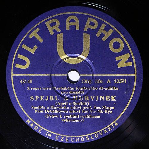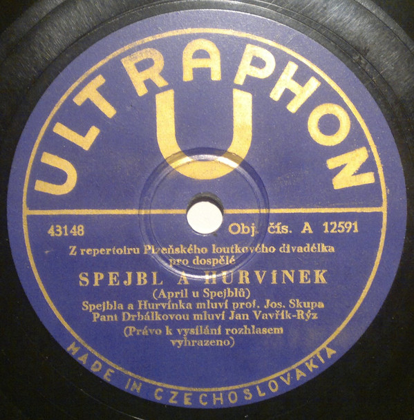 V nahrávce Apríl u Spejblu je zachycena postava paní Drbálkové, která vytvářela jednu z hlavních rolí Kolotoče o třech poschodích a kterou vytvořil (jako autor loutky i jako interpret) Jan Vavřík-Rýz. Tento výstup však z této hry nepochází a i charakter Drbálkové se proměňuje. Zatímco v divadelní inscenaci je krutá a pomstychtivá paní domácí, v gramofonové nahrávce její sociální zařazení sice zůstává, zlomyslnost se však transformuje do téměř nevinného aprílového žertíku.