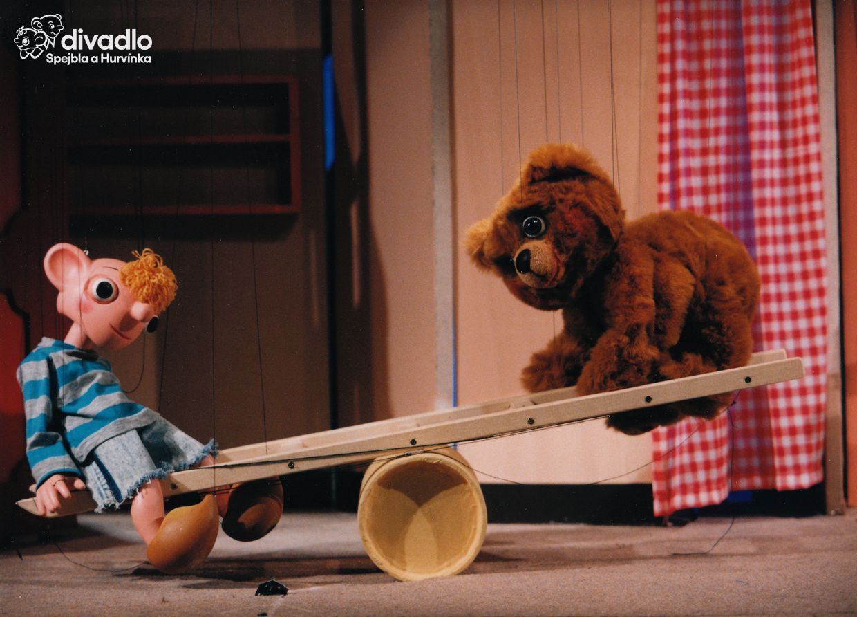 Epicentrem hraničních dvojsmyslů a pivního humoru je tentokrát kadibudka. Myšlenkově je hra tučně prorostlá genderovými stereotypy typu: Medvědy ať loví muži, Máničko, ty mi pomoz uvařit pro muže oběd. A uklidit. – Spejbl s Hurvínkem udělali nepořádek (to je jedno, že ho udělala medvíďata, to na podpoře stereotypu při kontaktu s nejmladším publikem nic nemění). Nespornou devizou inscenace jsou dobře načasované gagy založené na záměnách postav v rychlém tempu. (Od koho přišlo pohlazení? Od koho zase pohlavek?) Vynalézavý je gag se šicím strojem, který Hurvínka poslouchá na povel „šij–přestaň“, ale Spejbla poslechne jen jednou, aby ho navnadil, pak už ne, protože za vším hledej medvídě. Hlavy Spejbla a Hurvínka se chvějí strachy ve stejném rytmu, jakým šije šicí stroj. Takové nápady jsou osvěžující, leč je jich poměrně málo.
