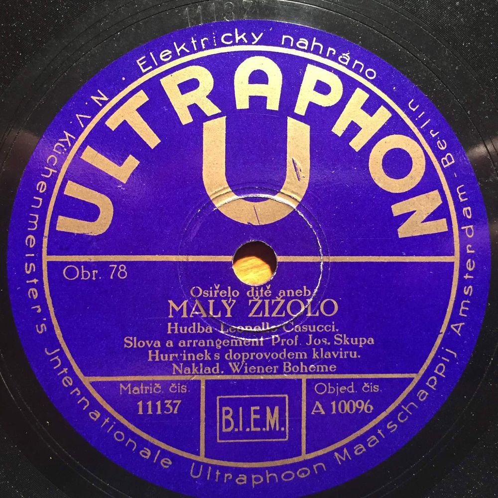Na etiketě uvedeno "Elektricky nahráno - N V Küchenmeister's Internationale Ultraphoon Maatschappij Amsterdam-Berlin".