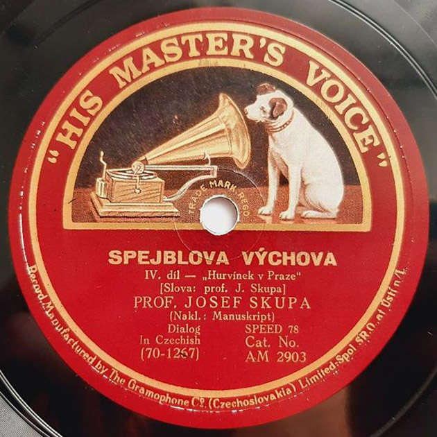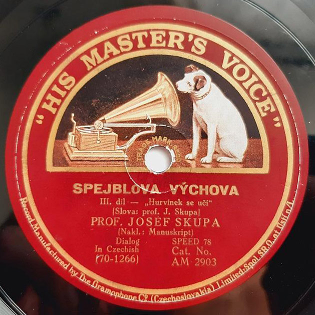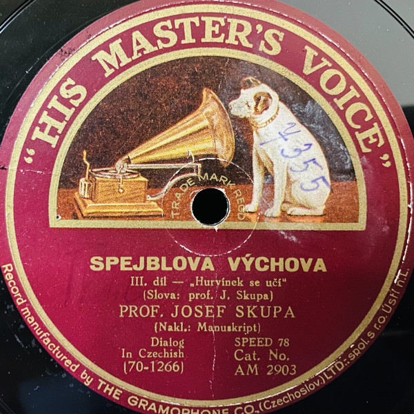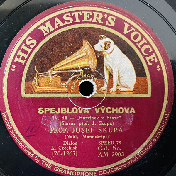Nahráno ve Velkém studiu v Nár. domě v Praze XII. Vyrobeno v Gramophone Co. (Czechoslovakia) Limited-Spol. SR.O. Ústí n/L.