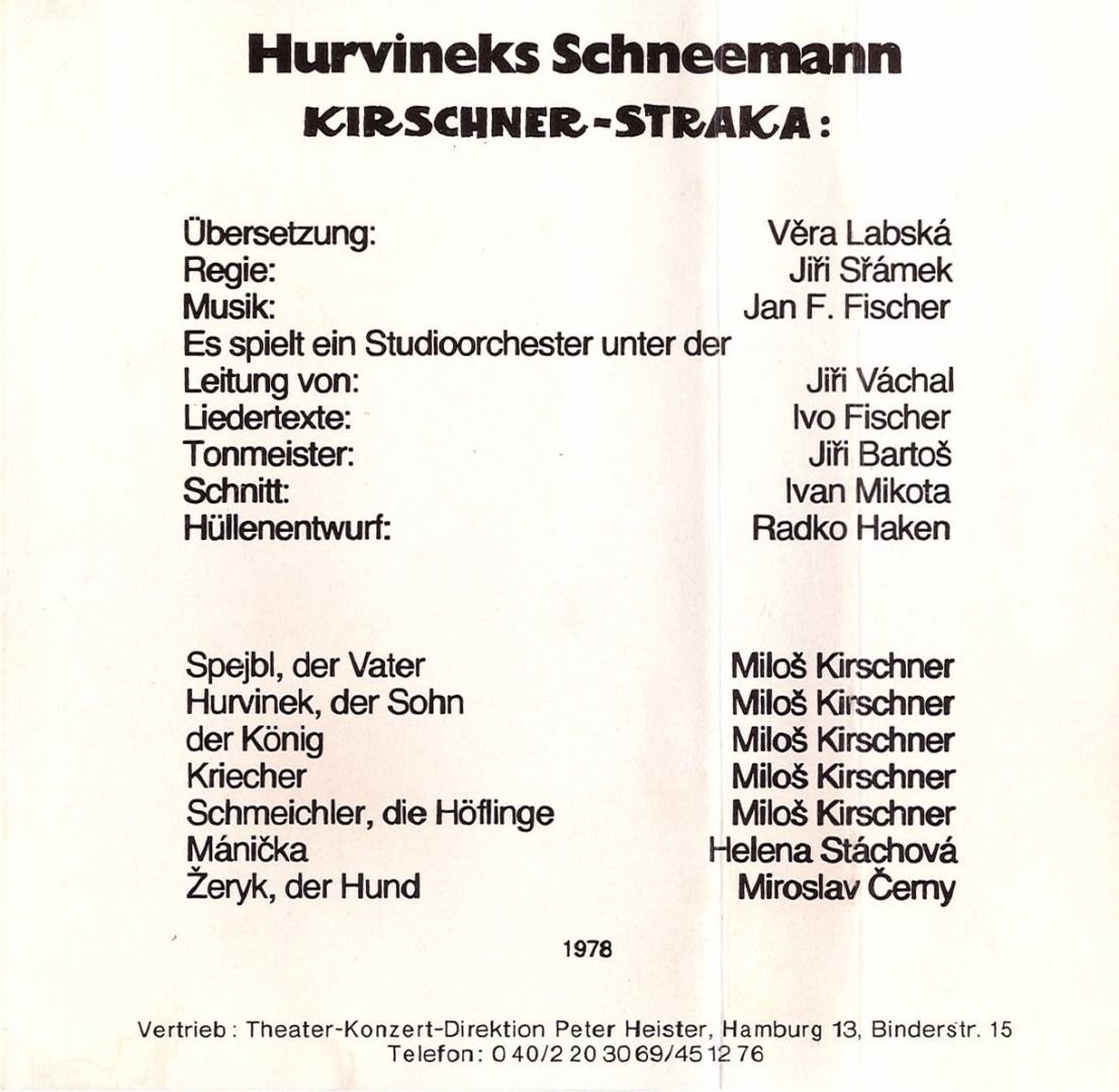 Původně nehurvínkovský námět byl nastudován z hlediska interpretace pouze s Milošem Kirschnerem a Miroslavem Černým coby Žerykem. Kirschner tedy mluvil za pět hlasově i charakterově odlišných postav. Mánička původně ve Sněhulákovi kvůli zdravotním komplikacím Heleny Štáchové nebyla, později do něj byla Milošem Kirschnerem a Vladimírem Strakou dopsána. V české nahrávce tedy Mánička neúčinkuje, v němčině už ano. Dlužno dodat, že se ono dopsání Máničky v německé verzi příliš neprojevilo – postava nebyla pro nahrávku z hlediska děje příliš rozvinuta a ve snímku se stala jen nahrávajícím prostředníkem mezi Spejblem a Hurvínkem.