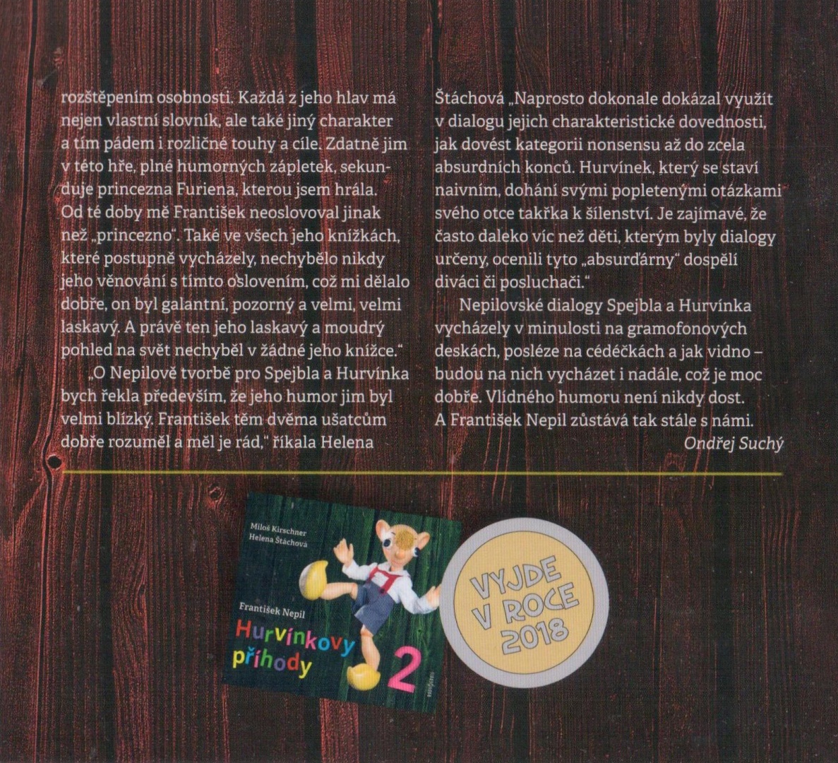 Nepilovské dialogy Spejbla a Hurvínka vycházely v minulosti na gramofonových deskách, posléze na cédéčkách a jak vidno - budou na nich vycházet i nadále, což je moc dobře. Vlídného humoru není nikdy dost. A František Nepil zůstává tak stále s námi.