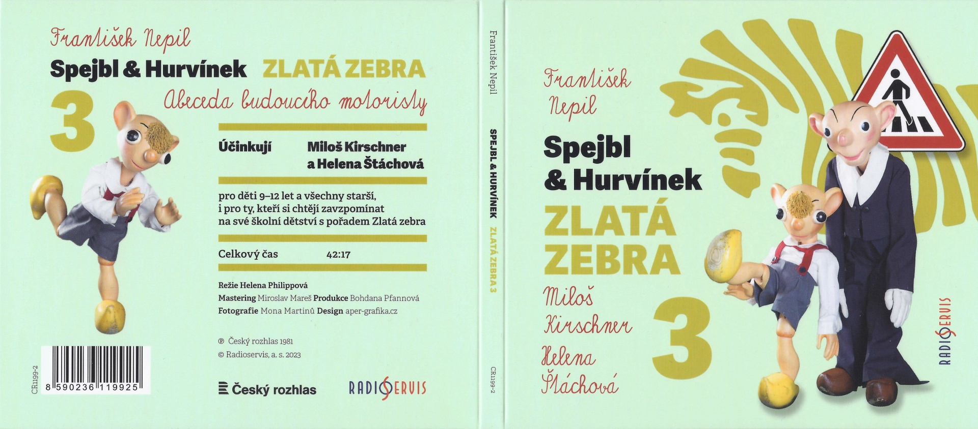 „Máš štěstí, ty i tvoji kamarádi, že vaším rozhlasovým učitelem bude jeden z nejlepších znalců všech předpisů na světě, a tedy i předpisů dopravních. Bude jím taťulda, Josef Spejbl. Pro případ, že by ti jeho výklad přece jenom nebyl docela úplně jasný, budu samozřejmě při tom i já, Hurvínek.“ Mnozí rodiče dnešních dětí si určitě vzpomenou, jak za svých školních let (začínalo se v roce 1977, výuka pokračovala do druhé poloviny osmdesátých let) ze školního rozhlasu poslouchali lekce pro budoucí motoristy i malé chodce či cyklisty v podání Spejbla a Hurvínka a podle pokynů vyplňovali výukové sešity Zlatá zebra dle své věkové kategorie. Byla s ním spojena i soutěž o odznak Zlatá zebra. Když jsme ve vydavatelství Radioservis slyšeli první díly, s překvapením jsme zjistili, jak aktuální jsou. Proto jsme se rozhodli postupně Zlatou zebru vydat na třech CD, rodičům jako vzpomínku na dětská léta a dětem pro zábavu a poučení v jednom. V roce 2022 vyšla dvě CD, první pro předškoláky a nejmenší školáky a druhé pro děti trošku odrostlé, které jsou už také zkušenějšími cyklisty. Teď si můžete poslechnout třetí sérii, která byla v roce 1981 určená žákům 7. tříd základních škol, dnes jí určitě porozumí i děti o dost mladší.