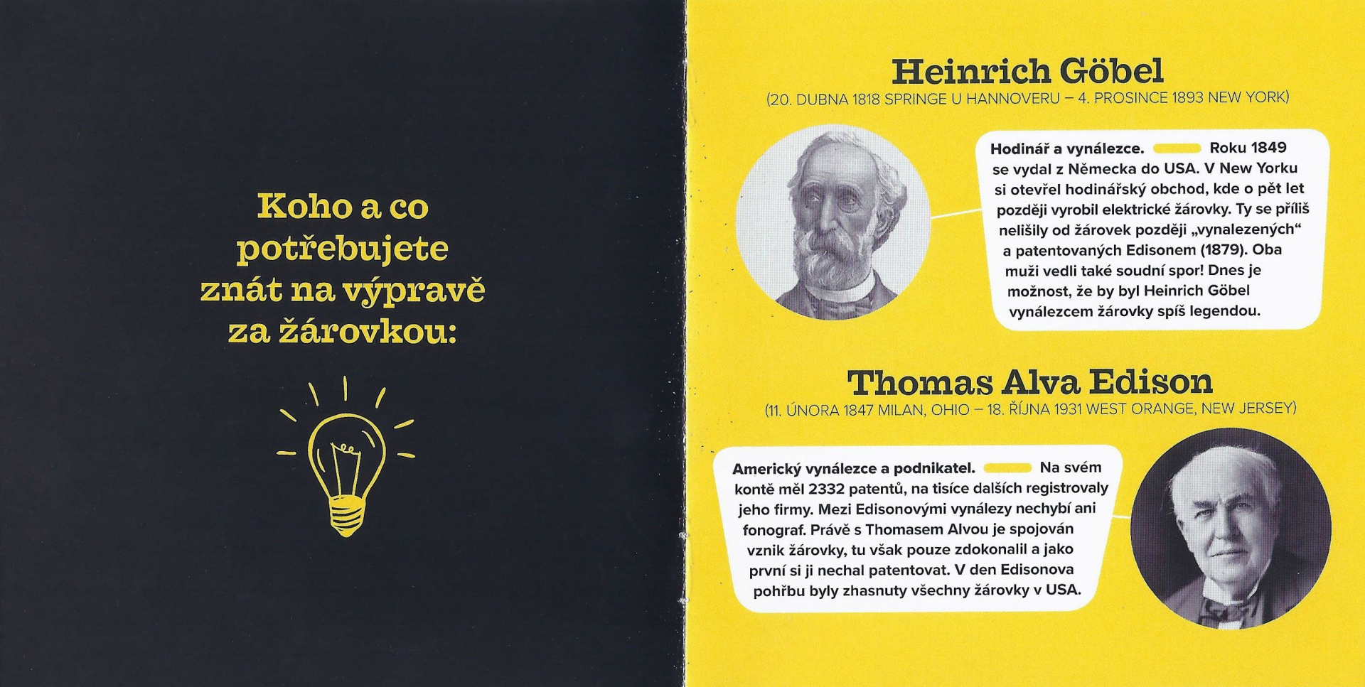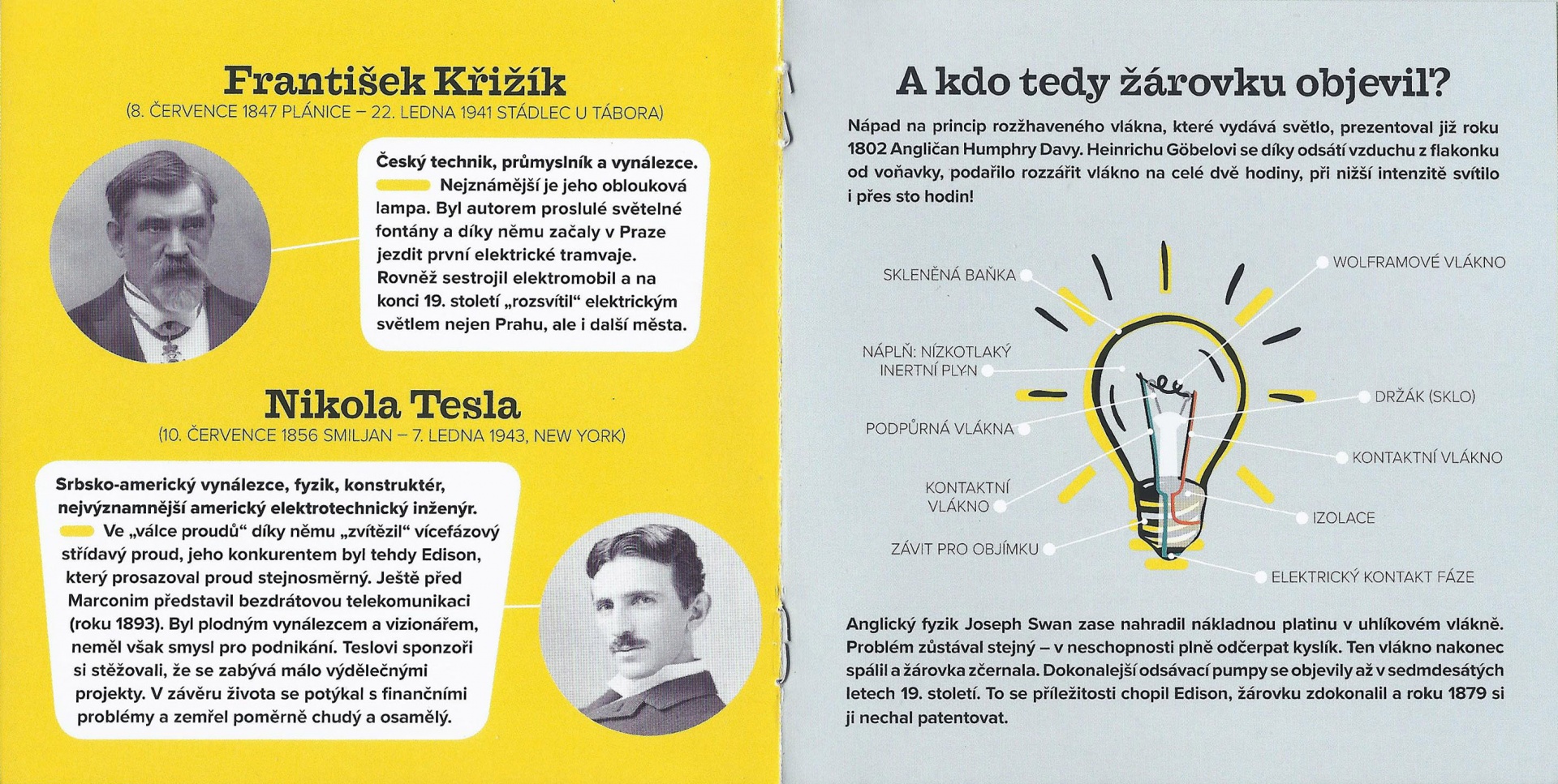 Prasklá žárovka způsobí u Spejblů nenadálé pozdvižení! Její výměnu Hurvínkovi a Máničce znesnadní závratě pana Spejbla, zároveň však odhalí jeho vášeň pro vynálezce a jejich objevy.A tak se mohou dozvědět, čemu všemu čelili vynálezci Heinrich Göbel, Thomas Alva Edison. František Křižík či Nikola Tesla a jakou roli v tom sehrála žárovka! Ještě že paní Kateřina je dáma,kterou nezaskočí vůbec nic, a tak se objeví v pravou chvíli a ve své kabelce najde vše, co je zapotřebí. Například kleště! Vydejte se s našimi hrdiny na cestu, kterou už 140 let osvětluje žárovka.