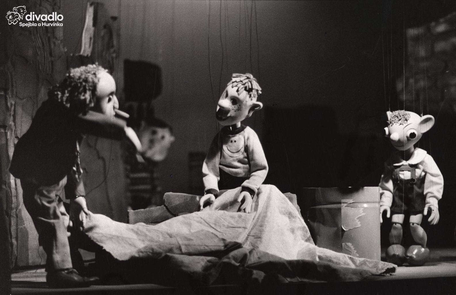 Hurvínek se střetává se strašidýlky, tentokráte ale převážně těmi laskavějšími.