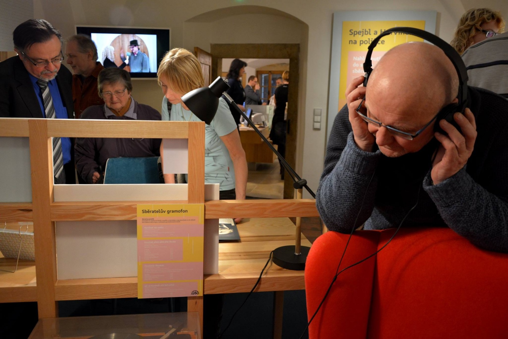 Spejbl a Hurvínek na poličce je výstava věnovaná převážně drobným loutkám, figurkám a zvukovým nahrávkám, které se díky oblibě a významu divadla Spejbla a Hurvínka staly vzácnými artikly pro řadu nadšených sběratelů. Výstava je koncipována jako volná parafráze „sběratelova pokoje“ s jeho poličkami, v kterých jsou prezentovány tyto drobné poklady. Návštěvník se tak seznámí nejen se samotným divadlem Spejbla a Hurvínka, ale i s rozličnou průmyslovou produkcí zabývající se loutkami a figurkami. Na výstavě tak můžete poznat dřevěné, sádrové, ale i skleněné postavičky této známe komické dvojice. Pro děti a nejen pro ně může výstava získat i detektivní podtext, když se vydají po stopách zmizelého Hurvínka, který utekl ze své poličky a skryl se někde v muzeu.
