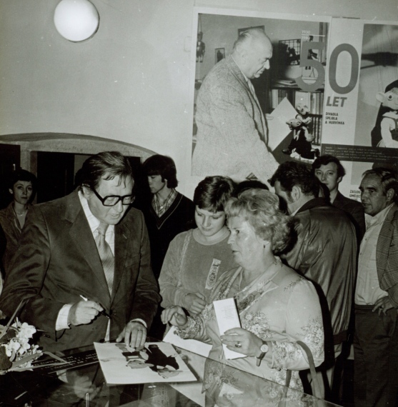 Na slavnostním otevření výstavy pořádané k 50. výročí Divadla Spejbla a Hurvínka byl přítomen i zasloužilý umělec Miloš Kirschner a další členové divadelního souboru a spolu s nimi i Spejbl s Hurvínkem. Slavnostní otevření se uskutečnilo dne 6. 7. 1980. Součástí výstavy byla expozice nejrůznějších předmětů s tématikou S+H jako třeba pohlednice, fotografie či gramofonové desky.
