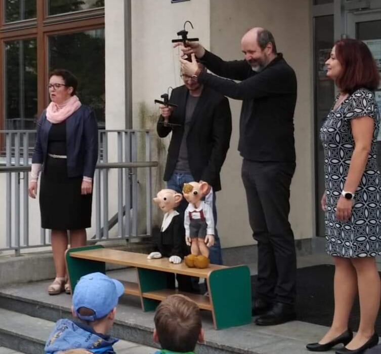 S Hurvínkem nemohlo být jinak, než veselo. Hurvínek nejdříve všem prozradil, že do čtvrté třídy chodí už 94 let a že kdyby někdo chtěl, rád mu poradí, jak v ní zůstat co nejdéle. Poté se Spejbl s Hurvínkem přesunuli za vchodové dveře do školy a vítali každého prvňáčka neotřelými povzbuzujícími prupovídkami typu: "Máš svačinu? Jo? Tak řízek mě a chleba tátovi!", nebo " Neboj, za devět let tě pustěj". A došlo samozřejmě i na focení a zvídavé dotazy. A pan Spejbl, kterého uličník Hurvínek nepustil moc ke slovu, vzkazuje všem prvňáčkům v republice, že jim drží palce a přeje jim, aby se jim ve škole dařilo a líbilo. A k tomuto přání se rádo přidává i celé naše divadlo.
