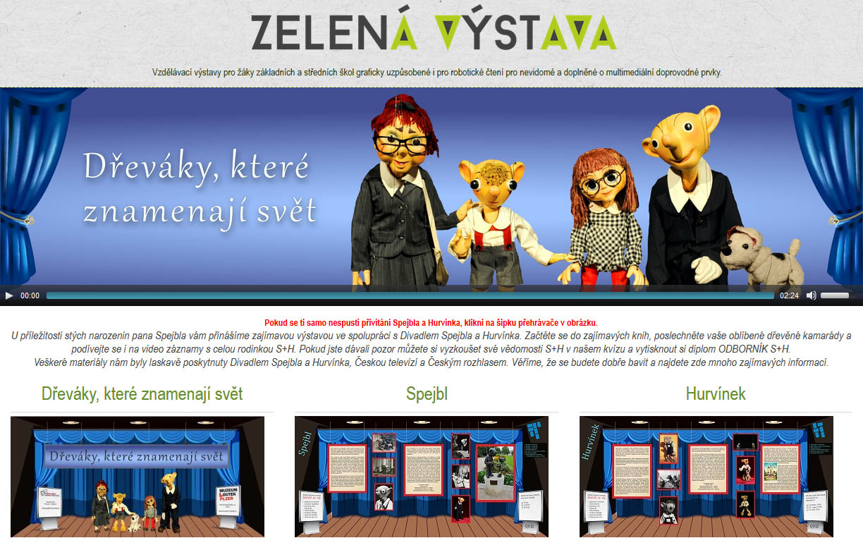 Musíme se neskromně pochválit :-), neboť při procházení stránek výstavy je patrné, že web výstavy ideově a z části i obsahově vychází z našeho webu, kdy oba projekty mají do určité míry společný cíl - systematicky zkatalogizovat tvorbu S+H a tu přiblížit milovníkům Spejbla a Hurvínka. Proto i některé z podkladů použitých na webu výstavy pochází z našich fan stránek (např. obrázky divadelních plakátů, divadelních programů, obaly desek či texty k divadelním premiérám atd.)., které pro náš fan web dlouhodobě sháníme, shromažďujeme, skenujeme, katalogizujeme a u zejména historických dokumentů mnohdy i počítačově restaurujeme. Většina materiálů však byla bezplatně pro Divadlo Spejbla a Hurvínka profesionálně zdigitalizována firmou Lucas Design Studio a následně použita pro potřeby této výstavy. Není bez zajímavosti, že kompletní digitalizace pro Divadlo Spejbla a Hurvínka obsahovala 7109 zdigitalizovaných a retušovaných stran knih, publikací a mnoho dalšího materiálu. Stejná firma rovněž bez nároku na honorář vytváří i všechny ostatní podobné výstavy publikované na webu, které jsou tematicky zaměřené na Českou republiku. To si jistě zaslouží velký obdiv!