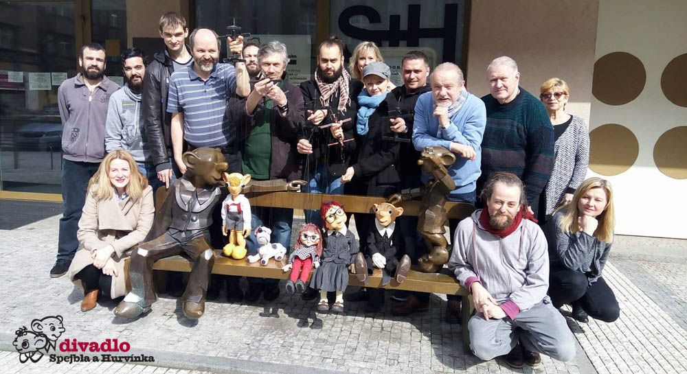 Bronzový Spejbl na ní něco šeptá do ucha svému dřevěnému synkovi. Copak to asi špitají? Že by něco ve smyslu: to je ale krásný den zalitý sluncem, konečně jsme na čerstvém vzduchu. Anebo si vyšli ven povídat o tom, zda by se jim slunce vešlo do kredence, jak zmiňuje Hurvínek v oblíbené scénce Mánička a Sluníčko? Nene, ani jedno z toho. Důvod, proč se všichni společně vypravili ven, je jiný. Dne 15. 3. 2018 se Divadlo Spejbla a Hurvínka totiž připojilo k akci VyjdiVen, jejíž cílem bylo vyjádřit nesouhlas s politickou situací v České republice.