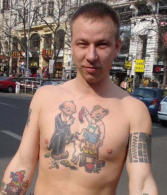 Luďka “Peška“ Pachla" napsat, až je téměř pozdě. Díky nevstřícné otevírací době galerie Hygienická stanice se mi tuto výstavu nedaří navštívit osobně, takže jen upozorním, že výstava končí 30.4. a její návštěvu nechám zcela na vašem úsudku. Každopádně autor sám o sobě stojí za pozornost - už kvůli parádnímu tetování, které si nechal zhotovit - posuďte sami.
