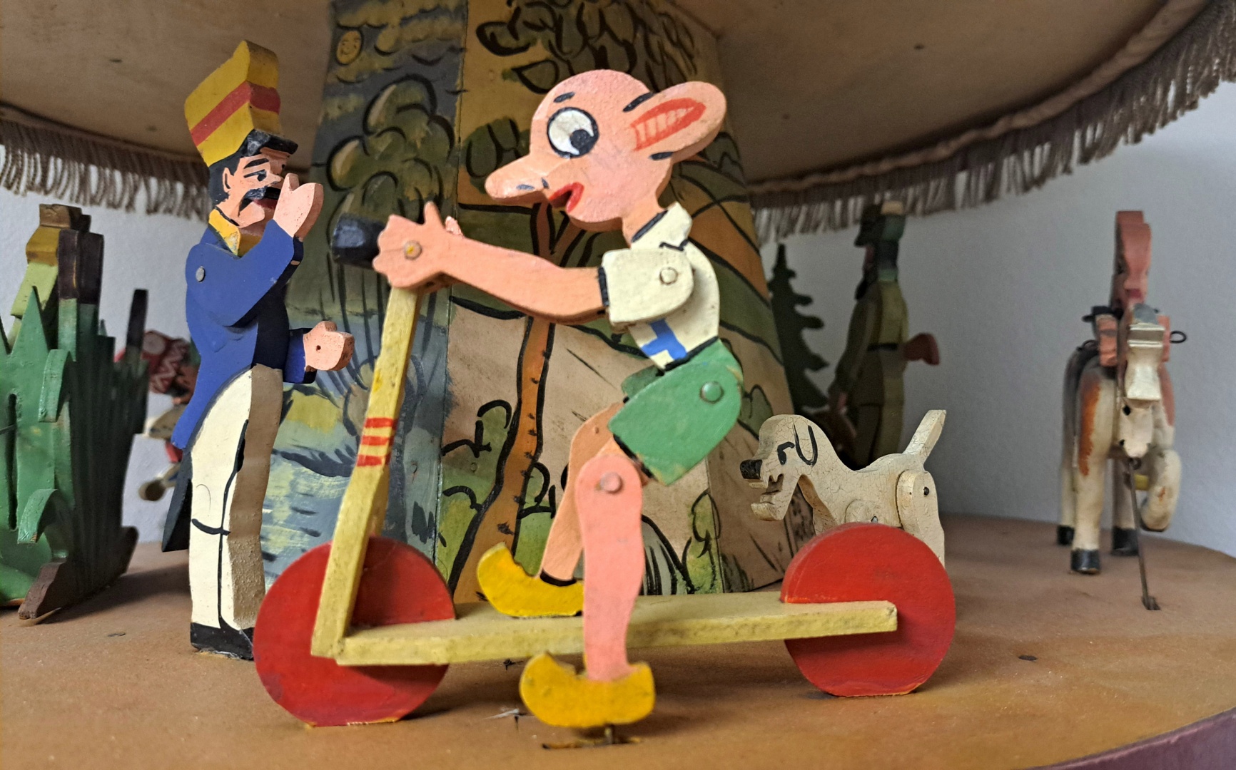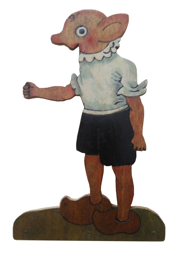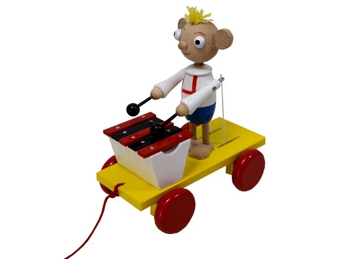 Firma MÚ Brno prodávala dřevěnou tahací hračku Hurvínka s xylofonem (rozměry: 11×21×19,5 cm).
