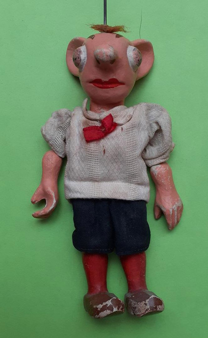 Figurka Hurvínka, vytvořená se Skupovým souhlasem a měřící 25 cm, přešla r. 1950 z pražské výrobny A. Štěrbová do Valašského družstva lidové a umělecké výroby v Liptále na Moravě (později LIPTA, výrobní družstvo). - Jaroslav Weiss