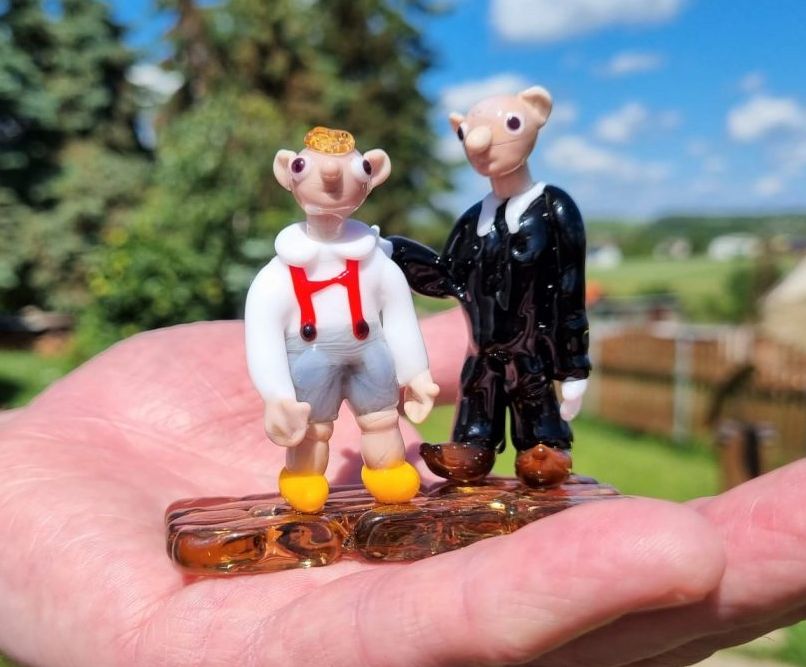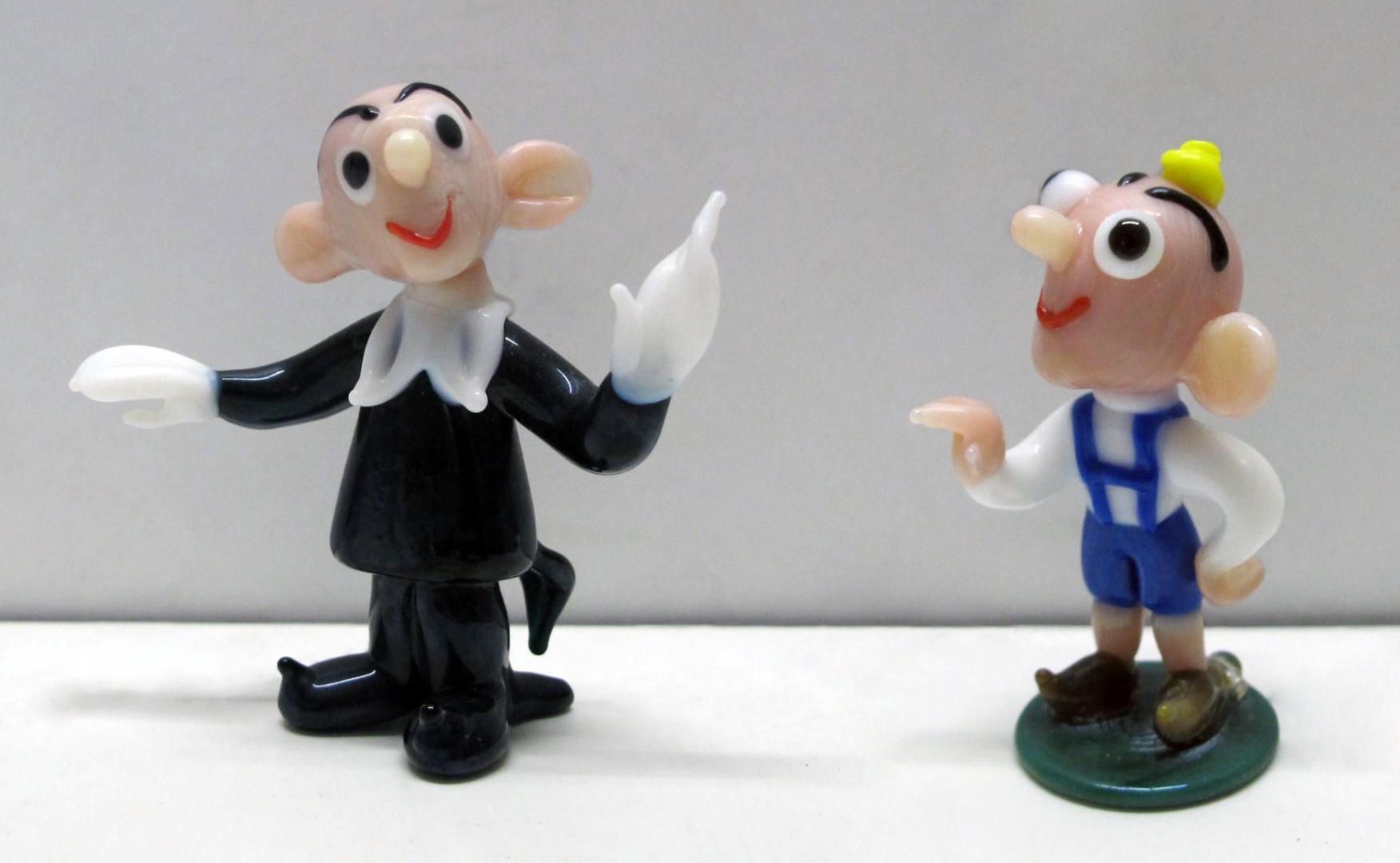 Skleněné figurky Spejbla a Hurvínka (autor neznámý)