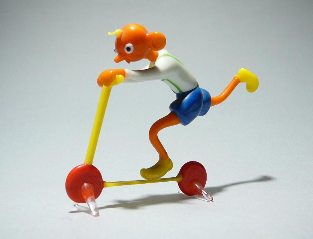 Skleněný Hurvínek na koloběžce (J. Brychta)
