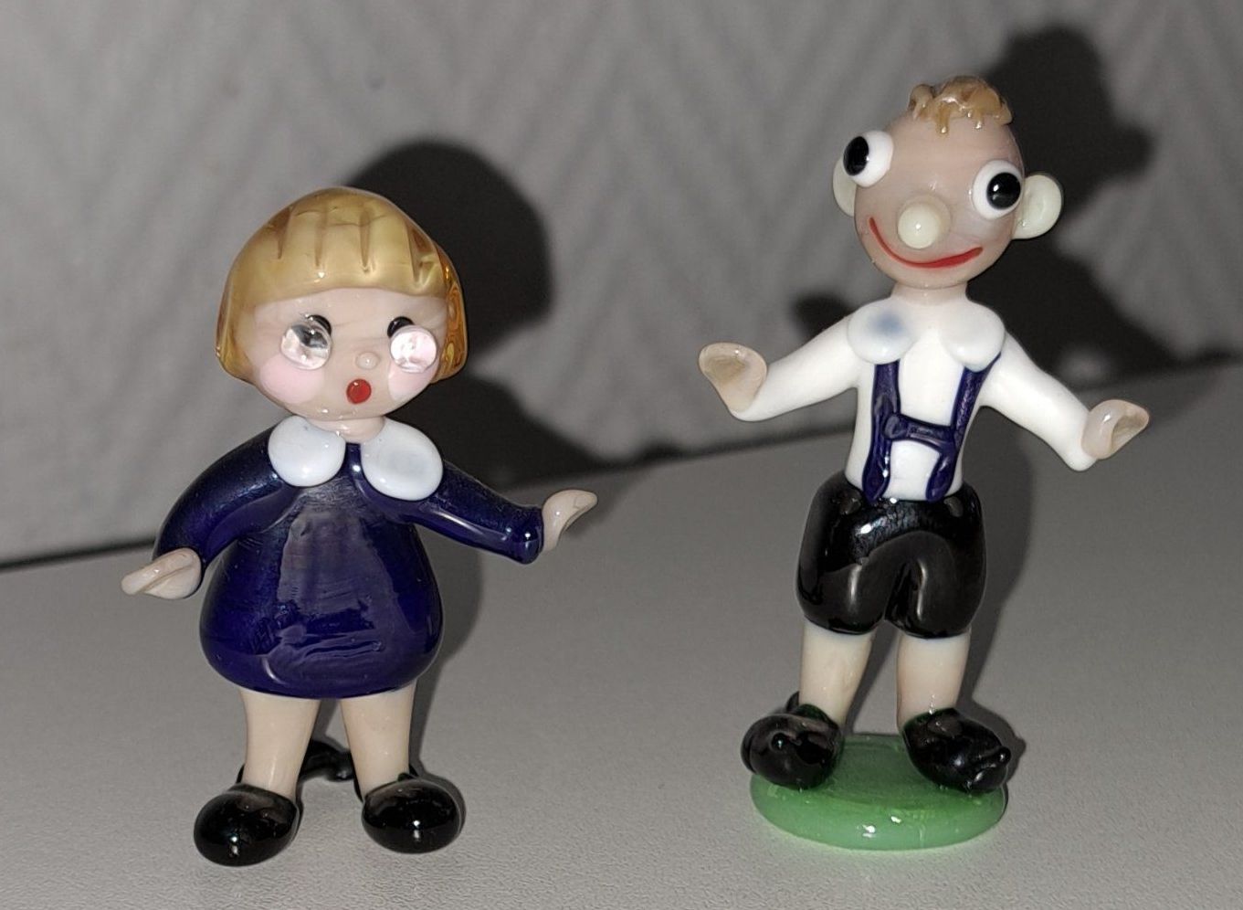 Skleněné figurky Spejbla a Hurvínka (autor neznámý), výška 7 a 6 cm