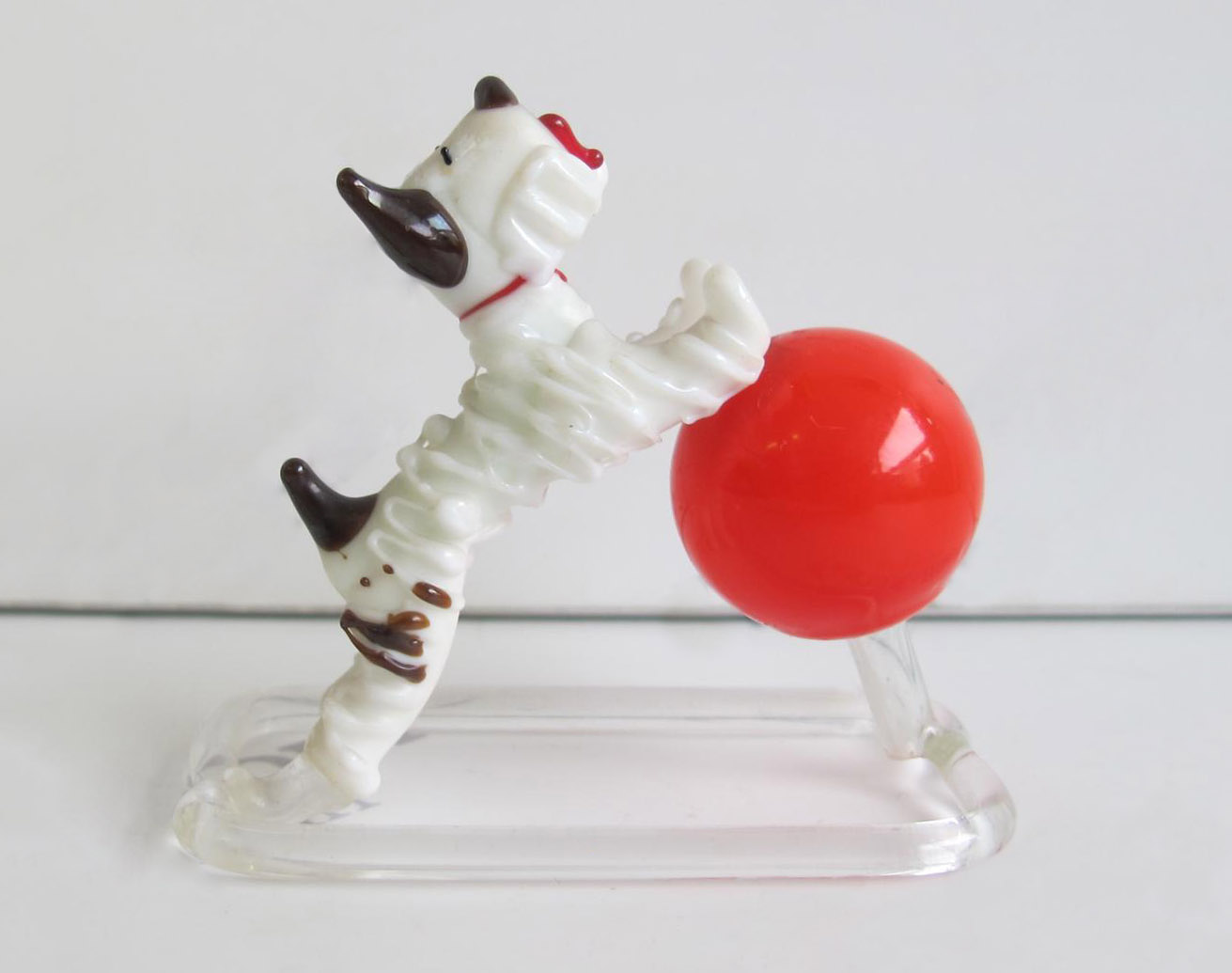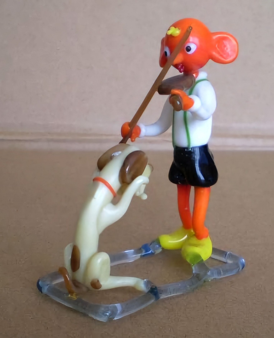 Skleněná figurka Hurvínka s houslemi a Žerykem (J. Brychta, cca 1955)
