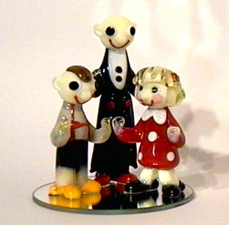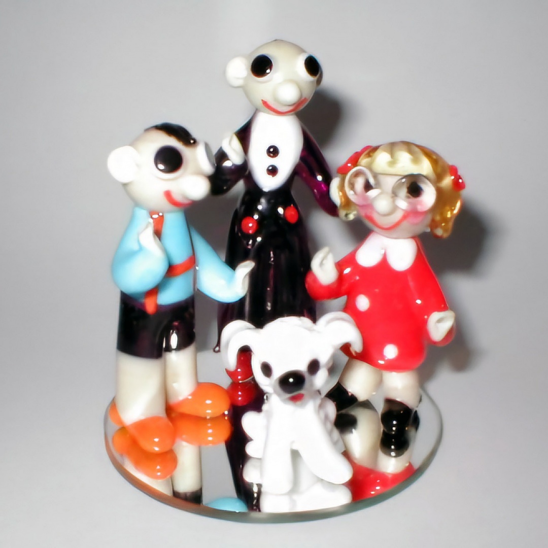 Skleněná figurka Spejblovic rodinky (výrobce: Skleněný ráj KM Marcela Ouhrabková, Železný Brod)