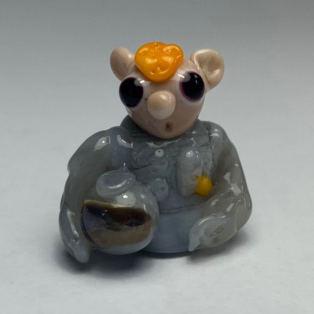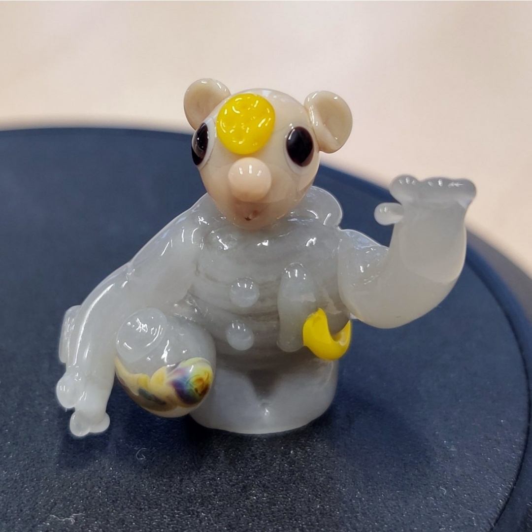 Skleněná figurka Hurvínka - jeden z pětice adeptů pro cestu do vesmíru (výrobce: sklářská dílna Miroslav Košler, Vícemil, 2022), výška 2 cm
