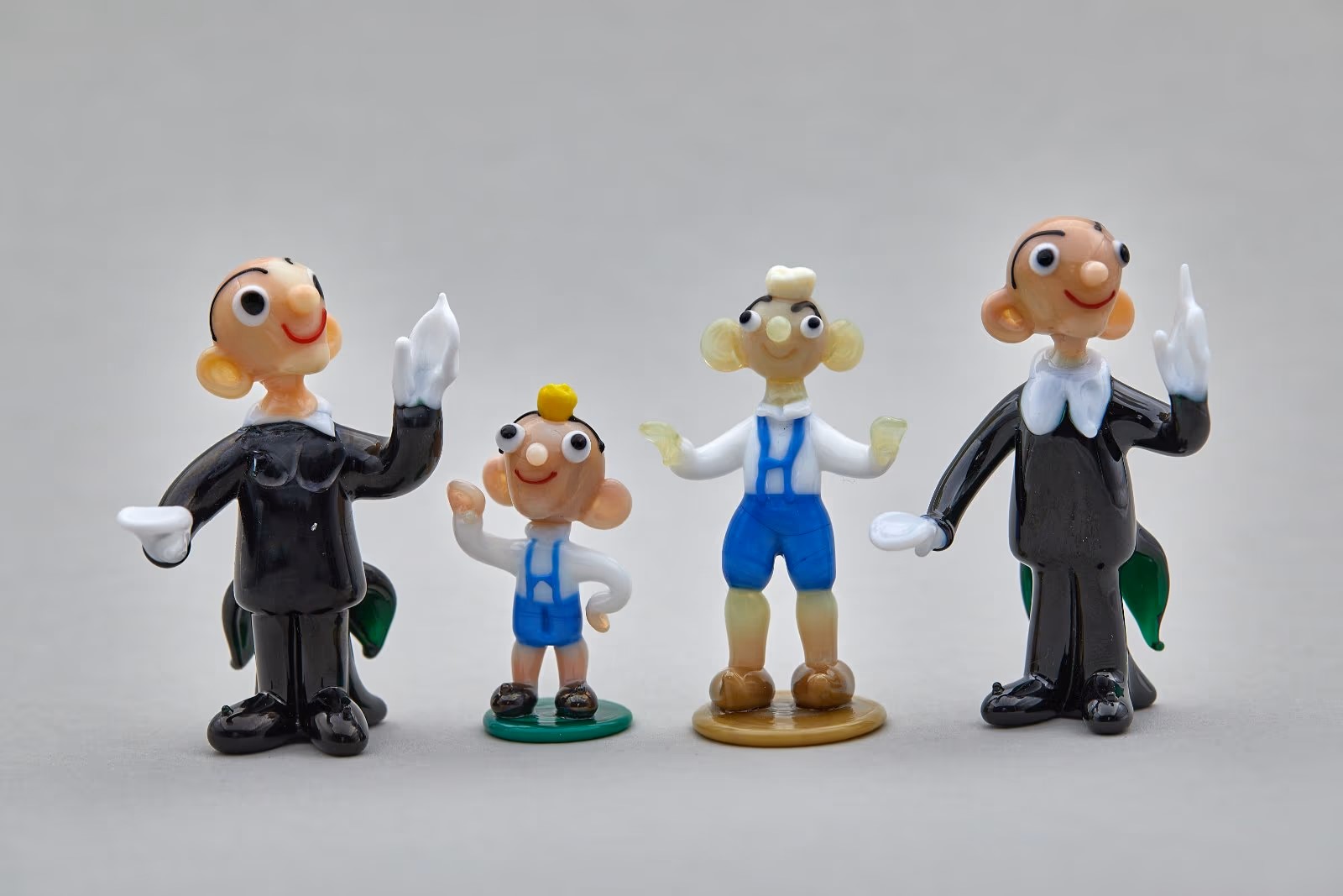 Nejnovějšími a aktuálně nejslavnějšími skleněnými figurkami jsou ty ze sklářské dílny Miroslava Košlera z jihočeské Vícemili, který pro Hurvínkovu cestu do vesmíru na sondě Planetum-1 vyrobil 18 mm vysokého skleněného Hurvínka. Původně měla mít figurka levou ruku zvednutou, jako že mává okýnkem do vesmíru, na cestu se ale nakonec vydal Hurvínek s rukou položenou na opasku. Z uměleckého a historického hlediska jsou nejcennějšími figurkami díla od Jaroslava Brychty (* 1895 - † 1971), který se jako pedagog na Státní odborné škole sklářské v Železném Brodě zaměřoval právě na tvorbu skleněných figurek taháním a foukáním nad kahanem. Později figurky modeloval ze žhavého skla. Díla Jaroslava Brychty dnes můžete najít v nabídce mnohých českých starožitnictví, galerií a aukčních síní.