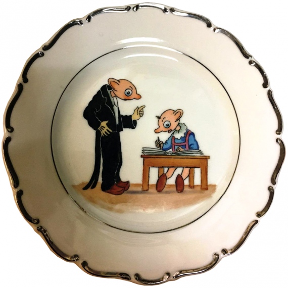 Sada českých ručně malovaných talířů se stříbrným okrajem z poloviny 20. století. Sada obsahovala 3 ks talířů (mělký, hluboký a dezertní). Průměry talířů 20 resp. 17 cm.