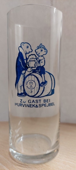 Další skleničky a pivní půllitr pocházejí z drážďanské restaurace Hurvínek.