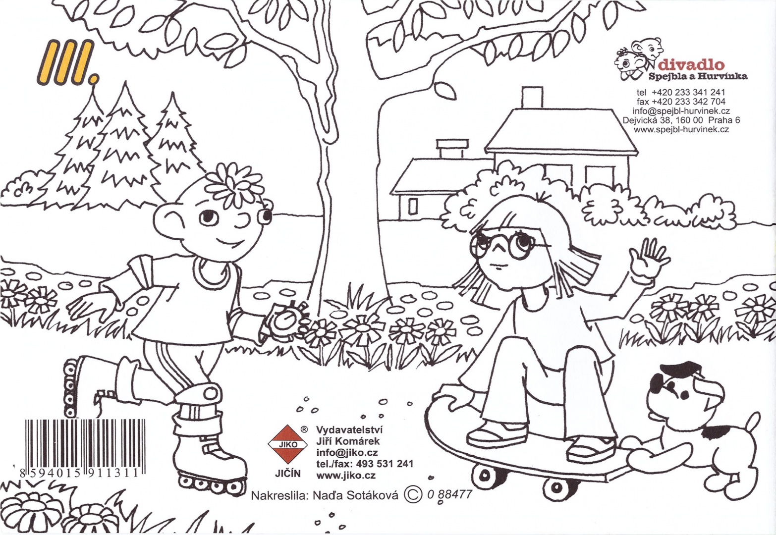 Nakreslila Naďa Sotáková, vydalo vydavatelství Jiří Komárek, JIKO Jičín, formát A5, 16 stran, EAN: 8594015911298 - Omalovánky Hurvínek III (2005)
