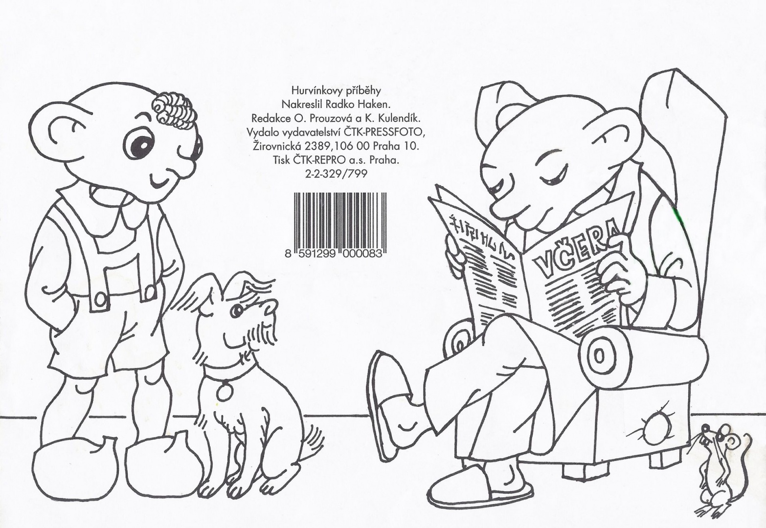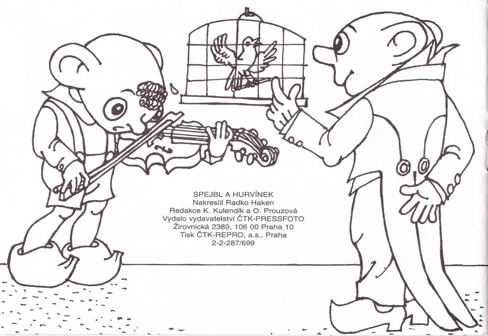Nakreslil: Radko Haken. Redakce: K. Kulendík a O. Prouzová. Vydalo vydavatelství ČTK-PRESSFOTO, Žirovnická 2389, 106 00 Praha 10. Tisk ČTK-REPRO, č.2-2-329/799, 16 stran, EAN: 859129900083. - Omalovánky Spejbl a Hurvínek