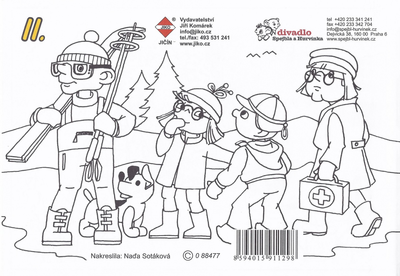 Nakreslila Naďa Sotáková, vydalo vydavatelství Jiří Komárek, JIKO Jičín, formát A5, 16 stran, EAN: 8594015911267 - Omalovánky Hurvínek II (2005)